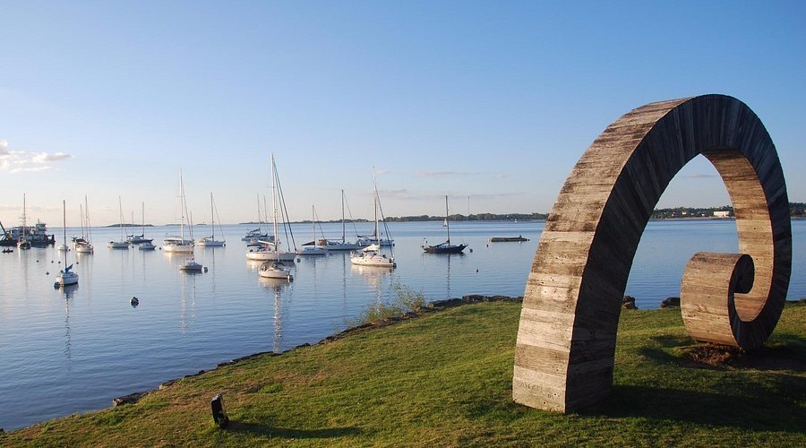 El Centro Cultural Bastión del Carmen surge en un predio que combina restos de la antigua muralla colonial con construcciones industriales del siglo XIX —entre ellas una esbelta chimenea— y se ubica sobre la ribera del Río de la Plata en Colonia del Sacramento.