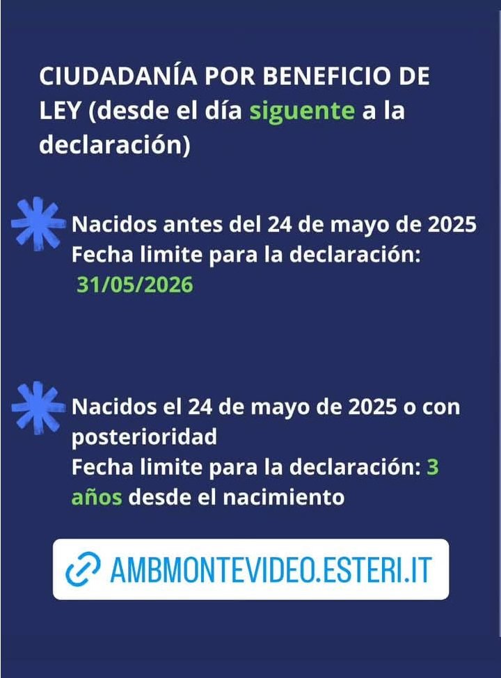 Para más información y detalles sobre el procedimiento, se recomienda visitar el sitio oficial de la embajada: ambmontevideo.esteri.it