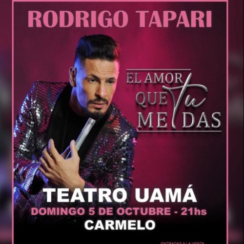 El reconocido cantante argentino Rodrigo Tapari se presenta este domingo 5 de octubre de 2025 a las 21:00 horas en el Teatro Uamá de Colonia del Sacramento, con su espectáculo El amor que tú me das.